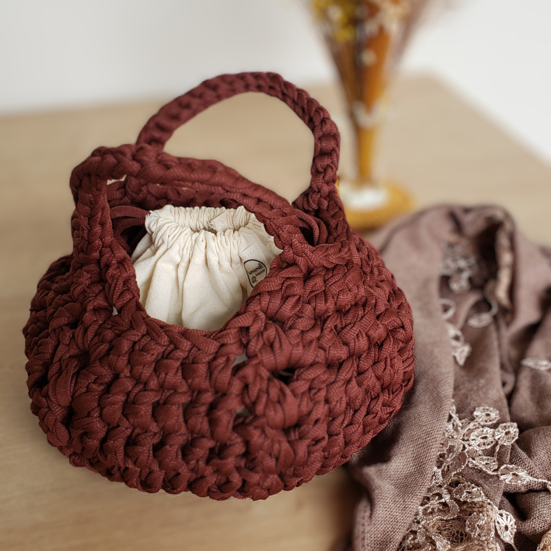 Bolsa de crochê em fio de malha premium na cor chocolate. Possui forro em algodão cru. A bolsa possui alças de mão mas para maior conforto ou mesmo quem prefere usar bolsa com alça tranversal tem como opção adquirir separadamente alça de corrente na cor ouro velho. O metal e de qualidade altero, com alta durabildade.